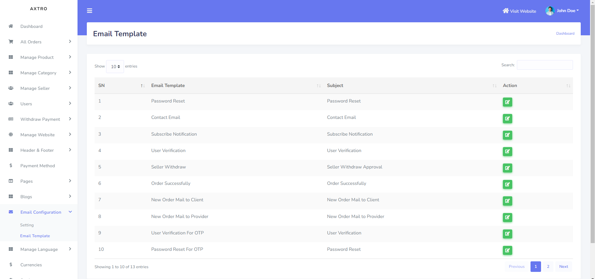 - Email Template Setting