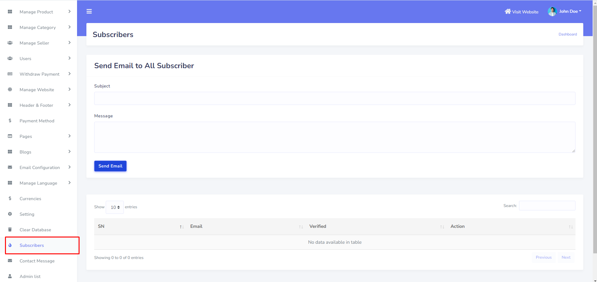 Newsletter email can be manage from the admin panel. Go to Suscribers".See: